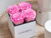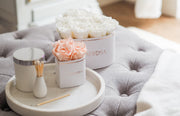 Our palatial Extra Large Square Parisian Style Hatbox is filled with 36 luxury forever roses